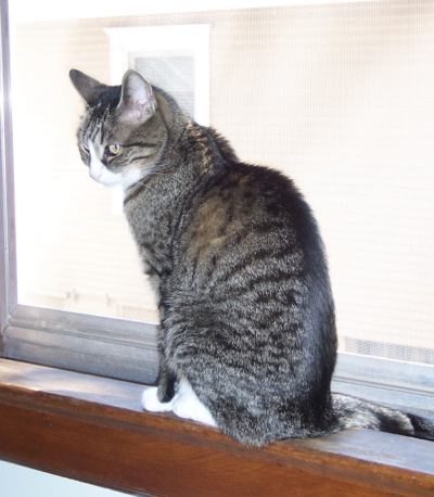 Snufkin celebrated her eleventh birthday on 9 April 2007 with a big can of non-prescription food. A week earlier, she had received some good medical news: a repeat blood test indicated that her kidney insufficiency was under control. She continues to be frisky, selectively friendly, and choosy about food, playing with but refusing to eat a mouse who wandered into the house (sorry, no picture). Her coat is thick and glossy, and the use of a FURminator brush has reduced shedding. |